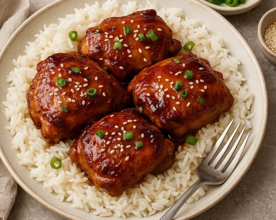 Teriyaki Chicken Thighs with Rice (Oven-Baked!)