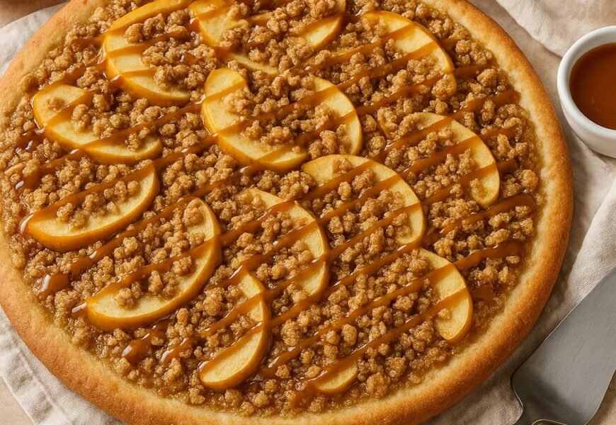Apple Crisp Pizza with Caramel Drizzle is a creative, crowd-pleasing dessert that combines the buttery crunch of apple crisp with the playful shape of a pizza. Each bite bursts with cinnamon-spiced apples, golden crumble, and smooth caramel. A perfect choice for Thanksgiving, family get-togethers, or whenever you crave a comforting fall dessert.