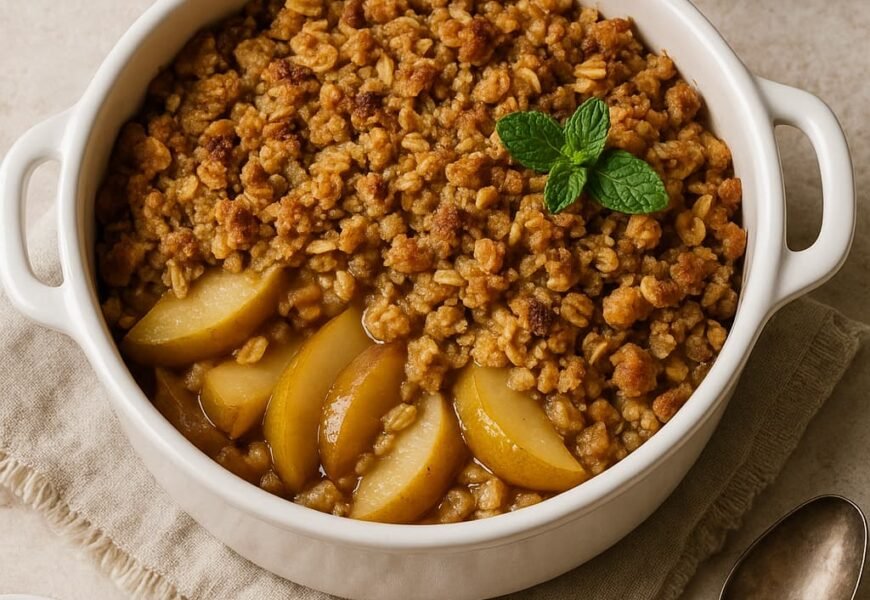This Apple Pear Crisp is the ultimate comfort dessert — warm, spiced fruit beneath a crunchy, buttery oat topping. Sweet, juicy apples and pears bake together with cinnamon and nutmeg for that irresistible fall aroma. Every bite balances soft fruit and crisp crumble, making it perfect for gatherings, weeknight treats, or holiday tables. Serve it warm with a scoop of vanilla ice cream or a dollop of whipped cream for an unforgettable finish.