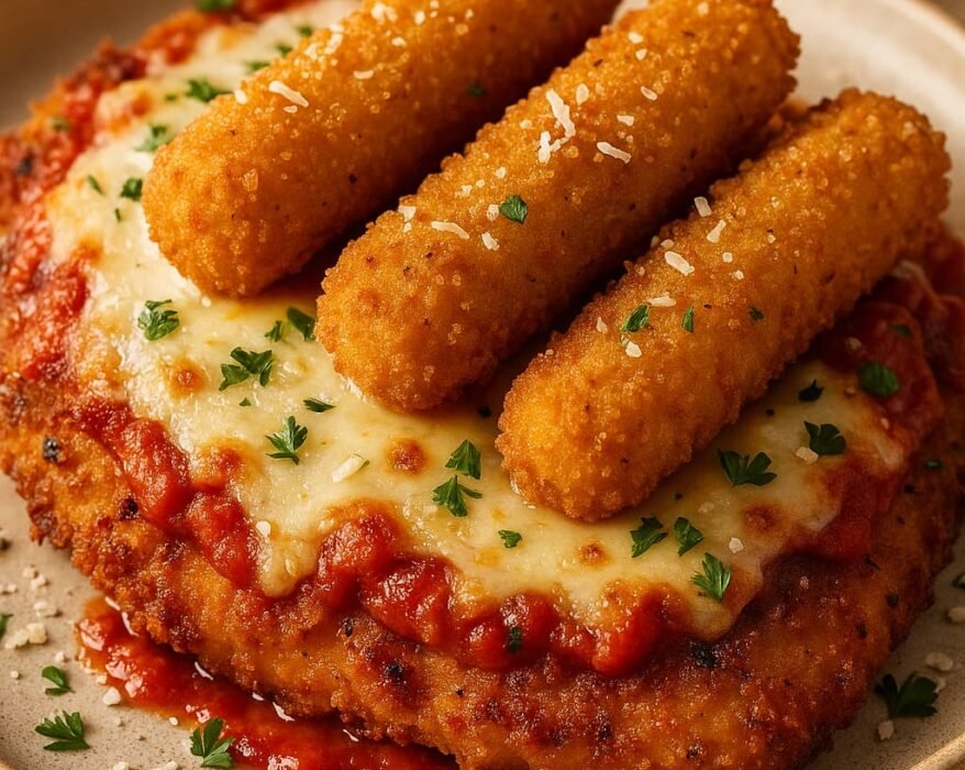 Chicken Parmesan with Mozzarella Sticks for Extra Crunch