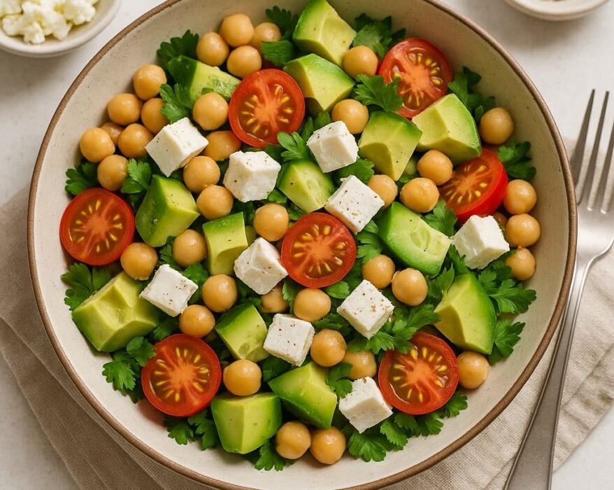 Chickpea Feta Avocado Salad Dinner Recipe | Refreshing & Protein-Packed
