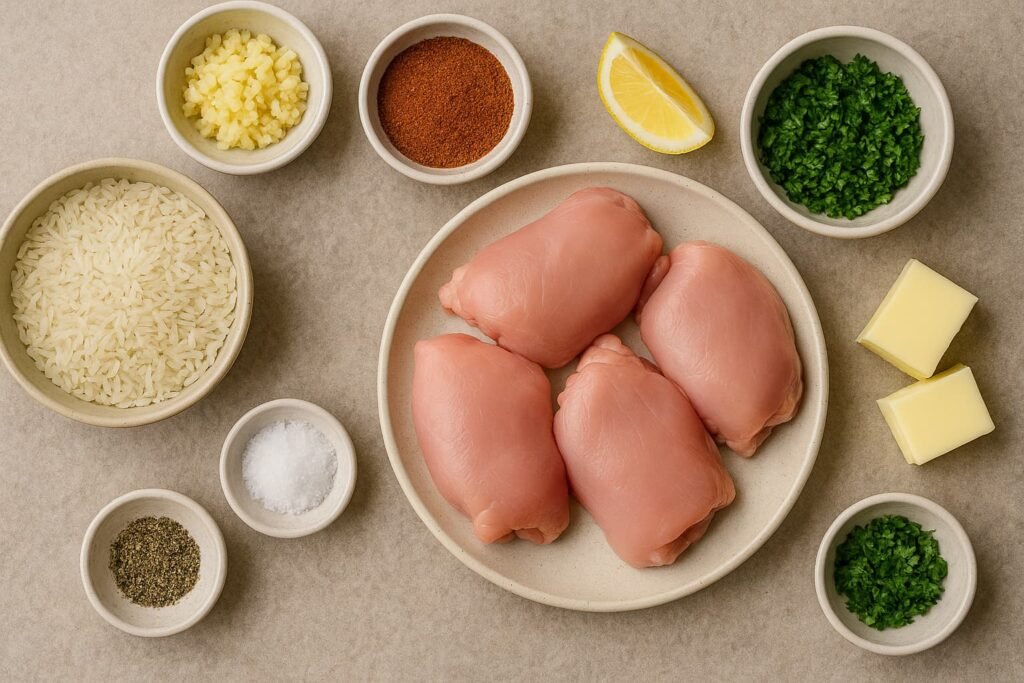 Ingredients for Cajun Chicken Thighs with Buttery Rice