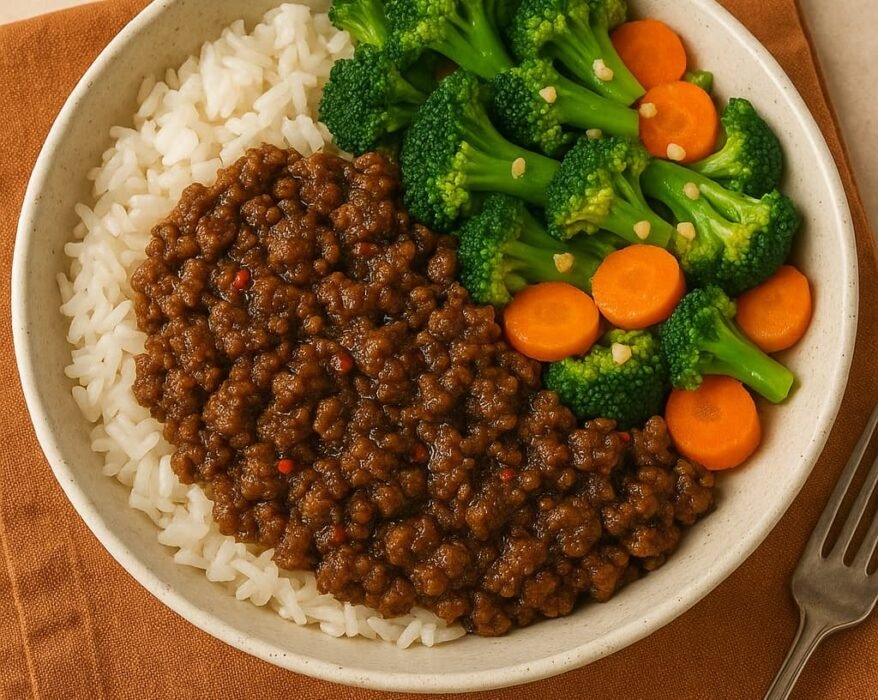 Spicy Ground Beef Stir-Fry Bowl Dinner Recipe with Garlic Veggies