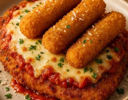 Chicken Parmesan with Mozzarella Sticks for Extra Crunch