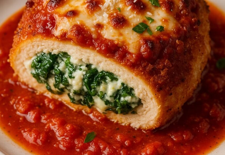 Chicken Parmesan Stuffed with Spinach and Ricotta is not just a meal – it’s an experience. With its crunchy exterior, creamy spinach-ricotta core, and cheesy topping baked to perfection, this recipe is sure to become a family favorite. Serve it at dinner parties, date nights, or cozy family meals – and watch it disappear from plates quickly!
