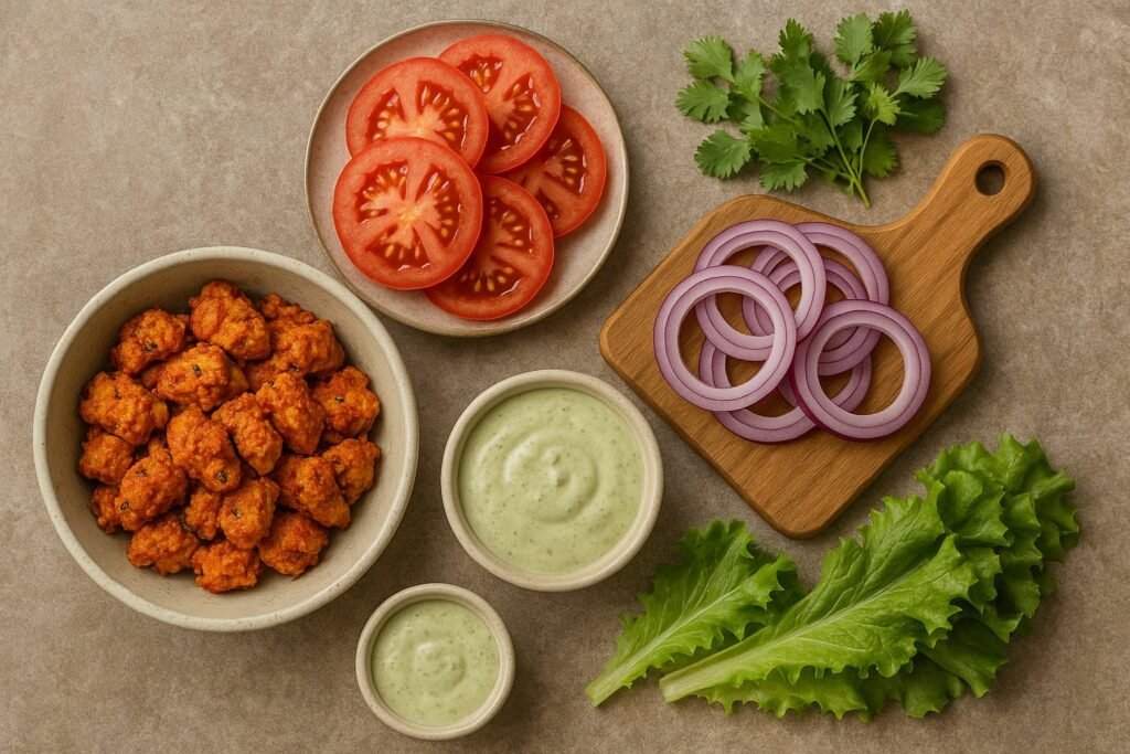 • Core Ingredients: Chicken breast/thighs, yogurt, tikka spices, bread, sauces.