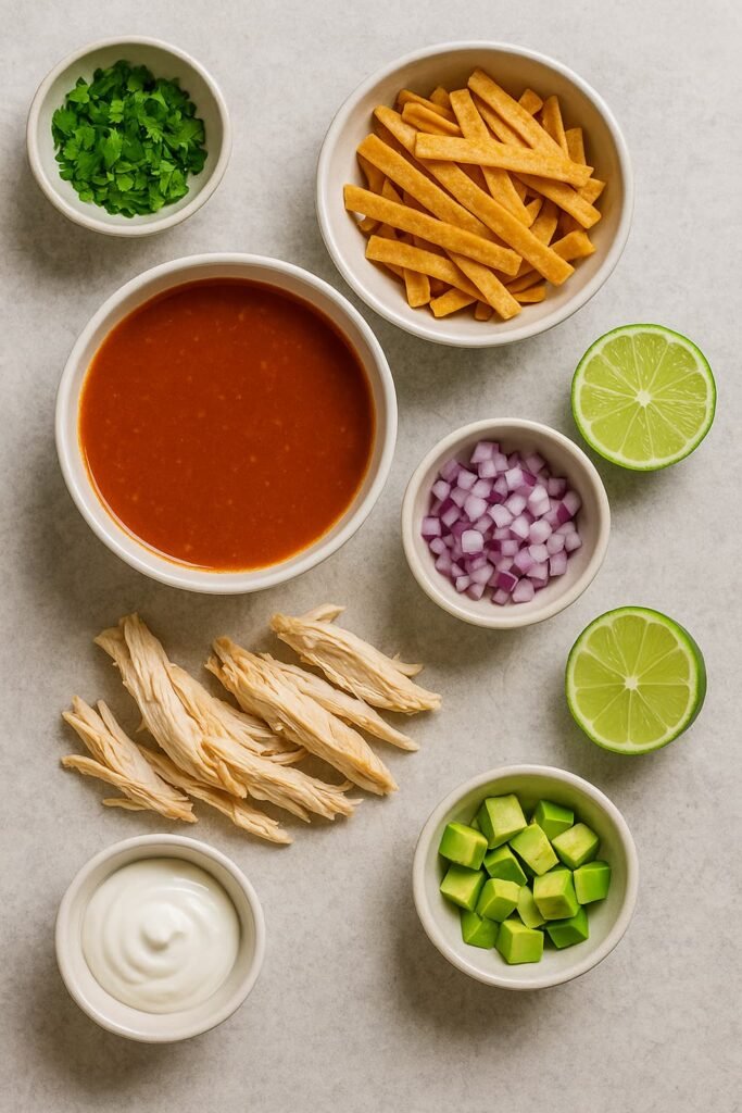 - Tortilla strips (homemade or store-bought—no judgment… kinda)