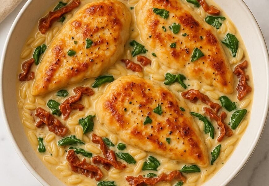 Looking for a dinner that’s quick, flavorful, and nourishing? This Creamy Sun-Dried Tomato Chicken Orzo Dinner Recipe is the perfect blend of cozy comfort food and weeknight convenience. Ready in just 30 minutes, it fits beautifully into categories like Quick Healthy Chicken Meals, Somewhat Healthy Meals, and Easy Healthy Pasta Dinner—making it a go-to recipe for busy nights.