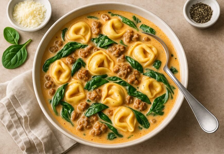 If comfort had a flavor, it would taste like this Creamy Tortellini Soup with Sausage and Spinach. It’s hearty, flavorful, and impossibly easy — the kind of meal that makes you feel like you’ve got your life together, even if your laundry says otherwise.