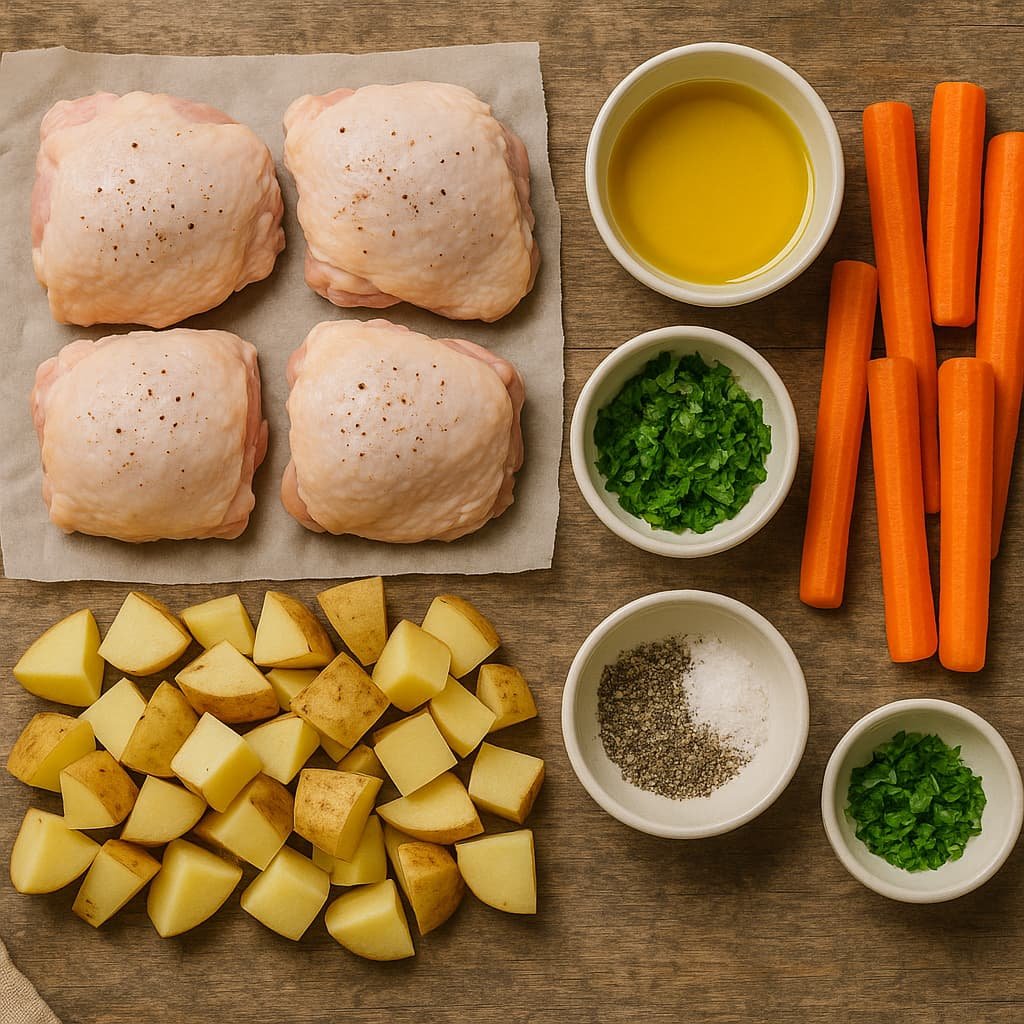 Ingredients for Crispy Chicken Thighs with Roasted Potatoes & Carrots