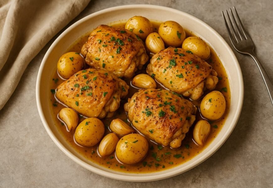 Few dishes say comfort food quite like crockpot chicken thighs with garlic & potatoes. This one-pot slow cooker meal delivers everything you want in a weeknight dinner: juicy chicken, buttery potatoes, and the rich aroma of garlic filling your kitchen. Whether you’re meal prepping, feeding a family, or looking for an effortless dinner option, this recipe checks all the boxes.