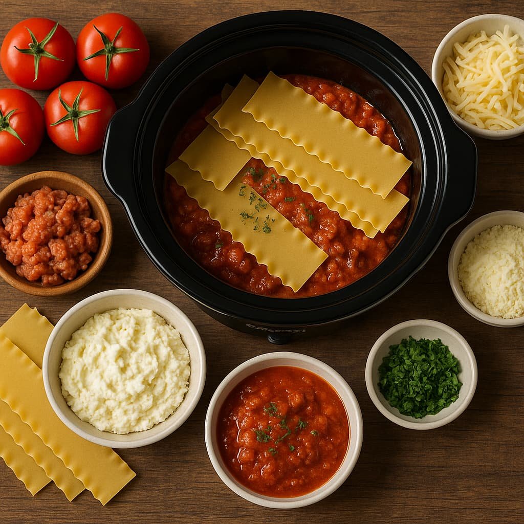 Here’s a classic crockpot lasagna ingredient list. Feel free to swap according to your taste or dietary needs.