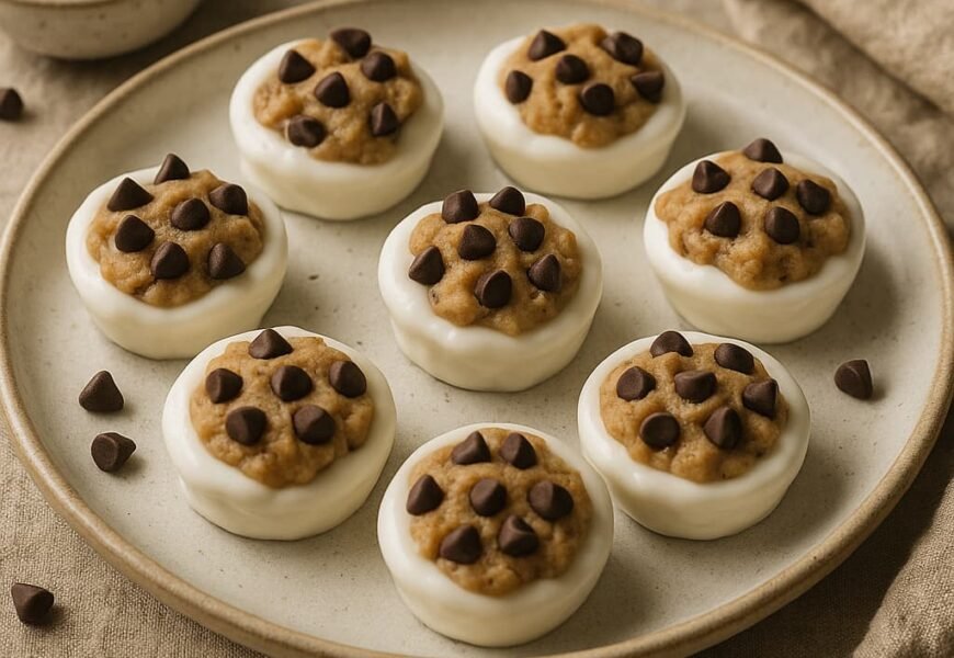 Cookie dough yogurt bites are bite-sized frozen snacks made by mixing edible cookie dough with yogurt and freezing them until firm. Unlike traditional cookie dough, these are: