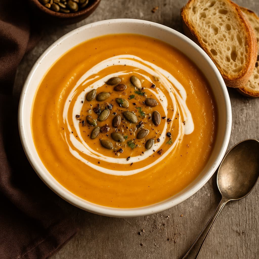 If fall were a person, it would 100% carry a pumpkin soup recipe in its back pocket. This one screams “cozy” from the first spoonful.