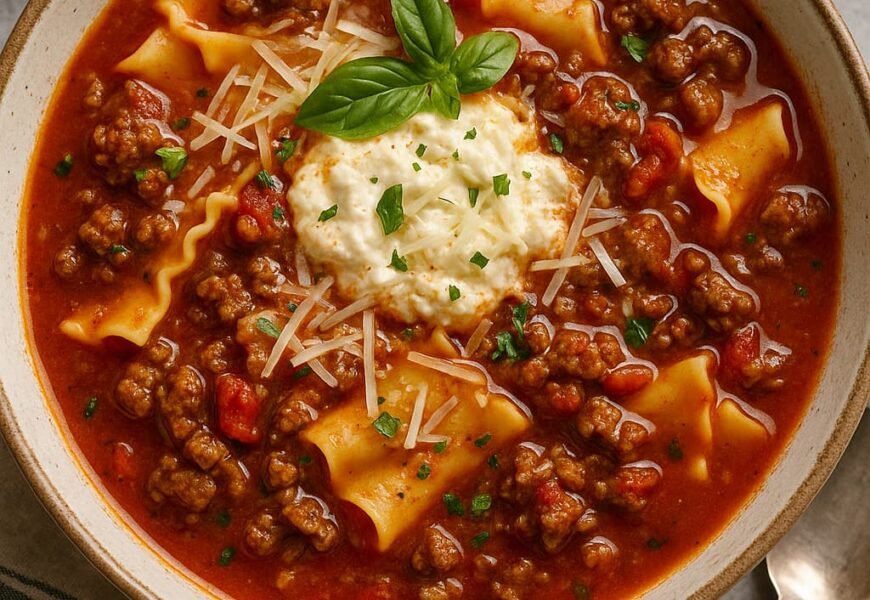 It’s exactly what it sounds like — lasagna in soup form, minus the drama. You still get that tomato-rich sauce, tender noodles, creamy cheese, and savory meat flavor, but instead of baking it for an hour, you toss everything into a pot and let it simmer.