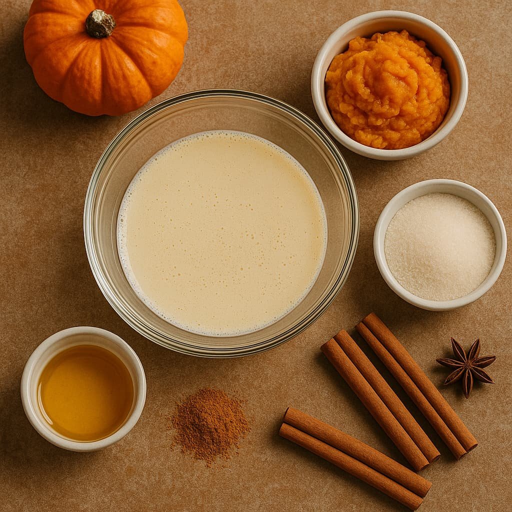 Swap the dairy for oat milk and coconut cream, and use a flax egg or cashew base for richness. Add extra pumpkin spice, because plant-based doesn’t mean boring.