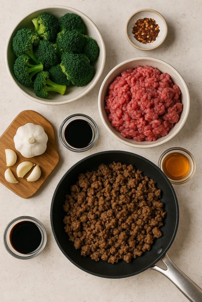 Here’s what goes into a classic ground beef and broccoli stir-fry: