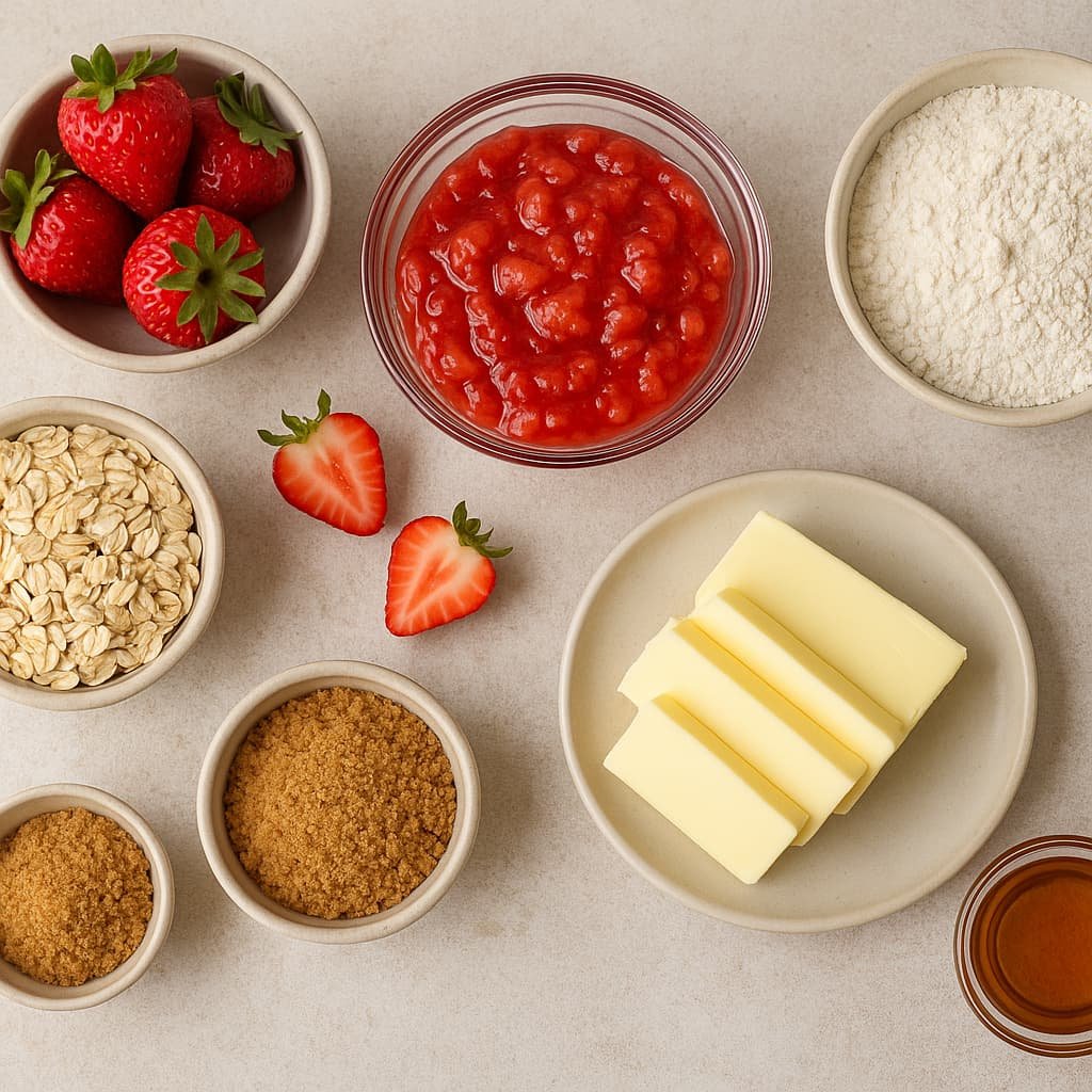 To make the best strawberry oat bars, you’ll need simple pantry staples and fresh fruit. Here’s a closer look: