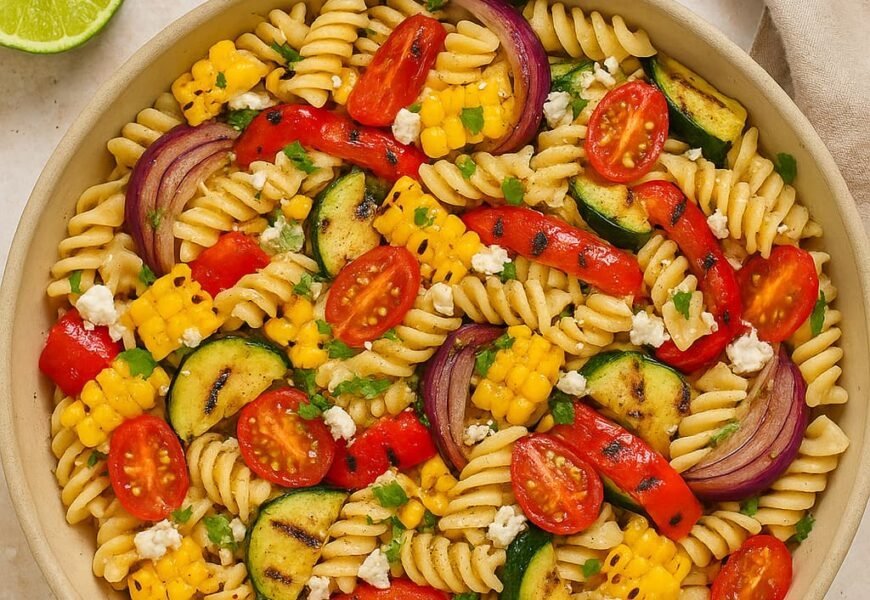 When it comes to summer recipes, nothing beats the smoky, creamy, and refreshing flavors of corn pasta. Inspired by the classic Mexican street corn (elote), this Street Corn Pasta Salad with Grilled Veggies combines the sweetness of charred corn, the smokiness of grilled vegetables, and the tangy creaminess of a zesty dressing. It’s the perfect dish for BBQs, picnics, or a light weeknight dinner.