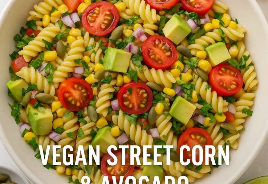 If you’re looking for a plant-based dish that’s both creamy and refreshing, this Vegan Street Corn & Avocado Pasta Salad is the perfect choice. Made with corn pasta as the base, this recipe combines smoky grilled corn, creamy avocado, fresh herbs, and a zesty lime dressing. It’s inspired by the classic flavors of Mexican street corn (elote), but made 100% vegan and guilt-free.
